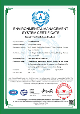 公司致力于成為制冷裝備行業(yè)的領(lǐng)導(dǎo)者,目前具備特種設(shè)備生產(chǎn)、施工專業(yè)承包、機電安裝工程等相關(guān)生產(chǎn)安裝資質(zhì),先后通過了ISO9001質(zhì)量管理體系認(rèn)證、ISO14001環(huán)境體系認(rèn)證和ISO45001職業(yè)健康安全認(rèn)證,作為主要參與者編寫了《食品真空冷凍干燥設(shè)備》行業(yè)標(biāo)準(zhǔn)、果蔬加工標(biāo)準(zhǔn)。