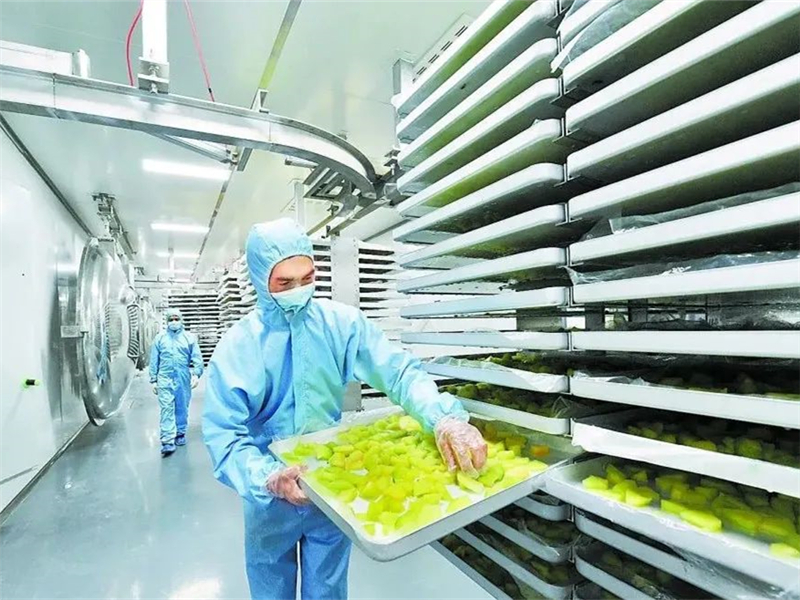 制作凍干果蔬一般通過清洗處理、切片處理、冷凍處理、真空處理、低溫干燥等步驟使果蔬中的水分進行蒸發(fā),實現(xiàn)整個凍干過程。